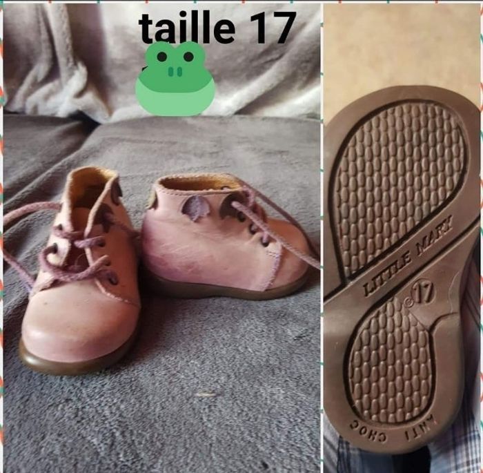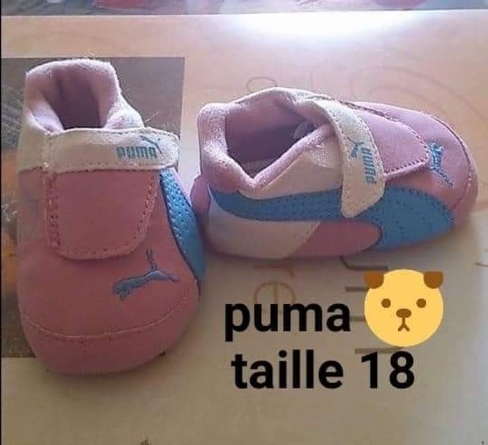 Chaussure bb avec taille sur chaque photos . Très bon état . Peut être vendu a l'unité. Pour les tong il sont a 3e l'unité , les puma rose et les reebok sont a 6€ l'unité , les kickers VENDU. les rose délavée en 17 sont a 12€ aussi , les chaussons sont a 3€ . Hésitez pas si vous voulez que je vous fasse une annonce .