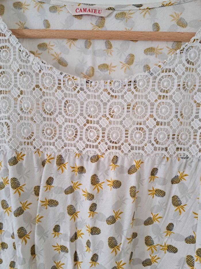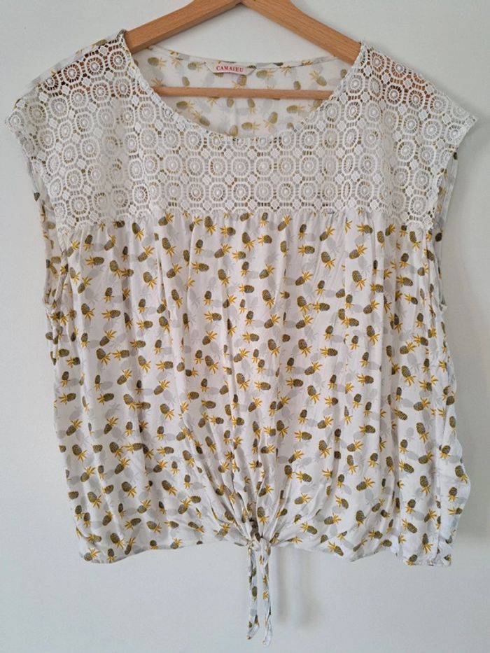 Tee-shirt légé avec nœud sur le devant Motif ananas Taille 44