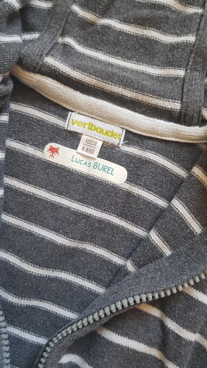 Gilet à capuche zippé Gris rayé blanc 4 ans Vertbaudet