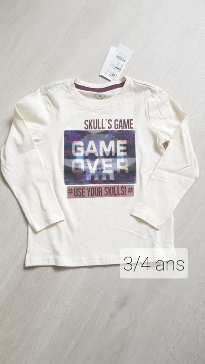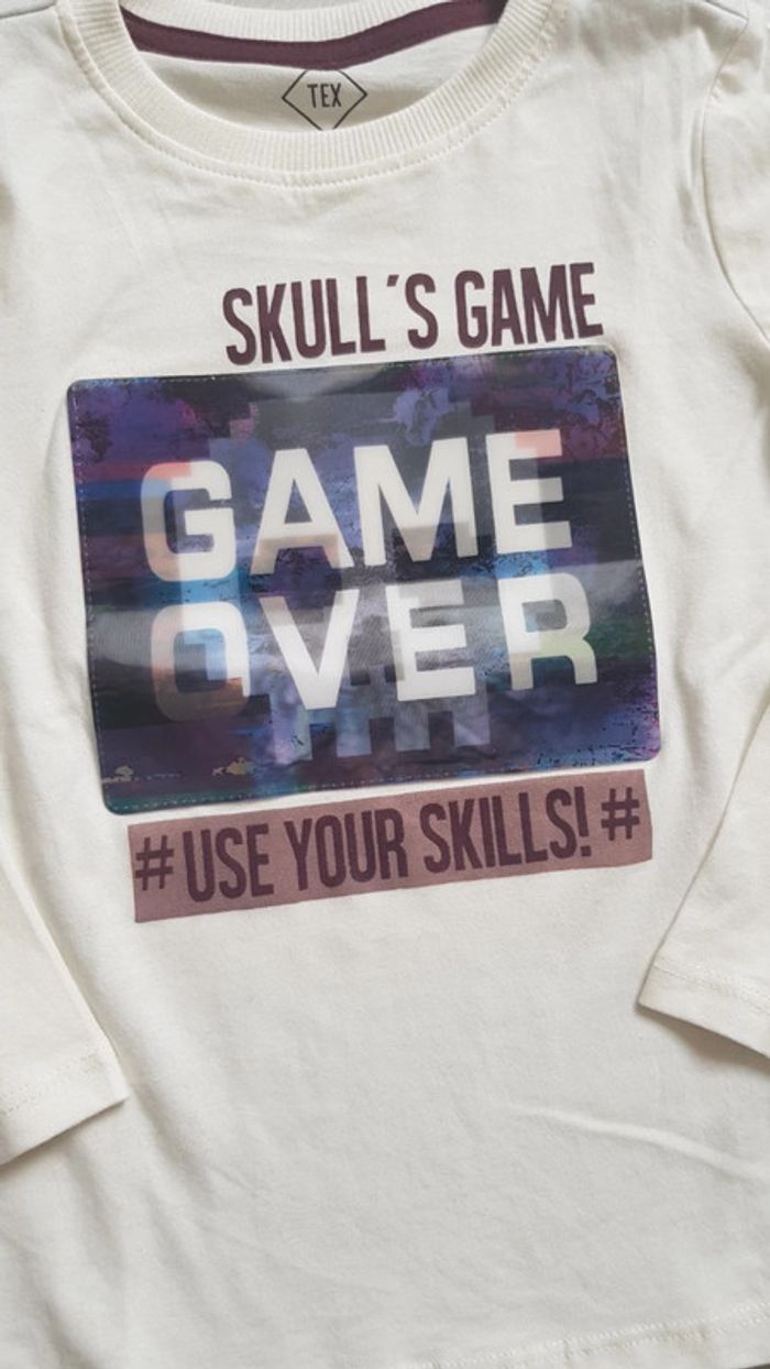 Tee-shirt manche longue Image Game Over en matière reflet Neuf avec étiquette
