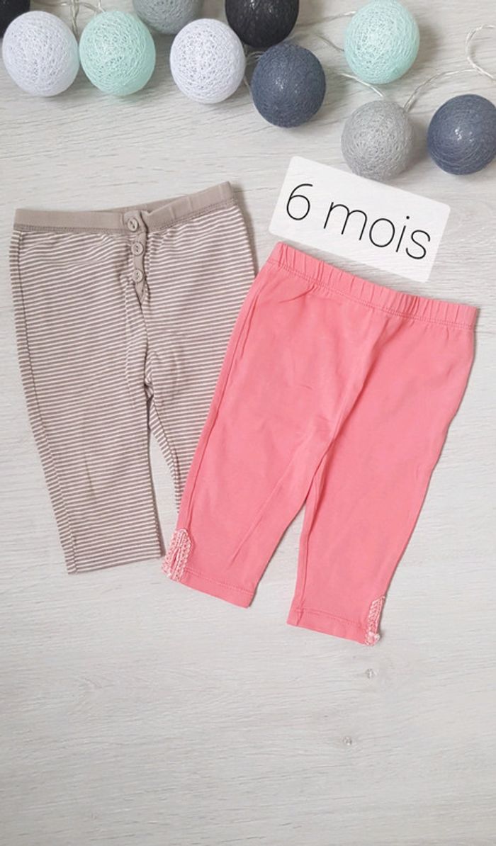 Lot de leggings Le rose de marque Babibou Le blanc et taupe de marque Kitchoun 6 mois