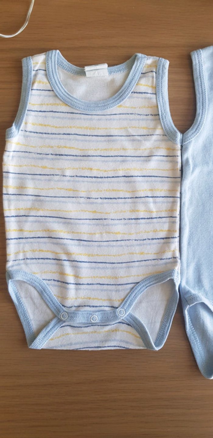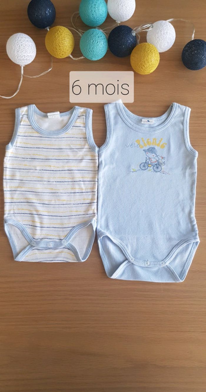 Lot de 2 bodies manches courtes Celui de droite taille un peu plus grand il peut faire la transition avec le 9 mois Léger accros au dessus d'une pression 6 mois #garçon6moisemiliedel49