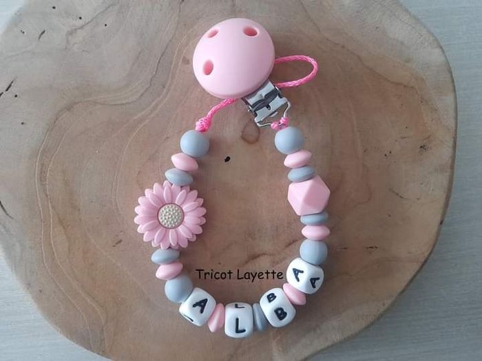 Attache tétine en silicone personnalisé au prénom de votre enfant (envoyez moi un message pour la personnalisation) Possibilité de rajouter un adaptateur en silicone pour les tétines Mam (+0,75€) (me contacter avant l'achat pour que je modifie le prix) Délais de fabrication et d'envoi : 48h maximum Les couleurs peuvent être changées à votre demande. L'attache tétine ne sera faites qu'une fois le paiement validé, une photo vous sera envoyée avant l'envoi du colis.