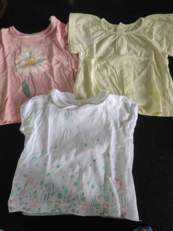 1 tee shirt blanc marque baby by Gémo 1 tee shirt rose marque Primark 1 tee shirt jaune kitchoun