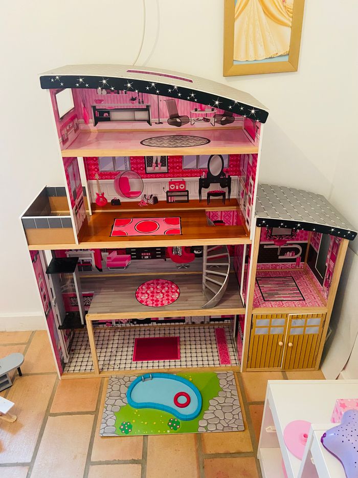 Maison de poupée 135cm Avec accessoire en bois Quasiment jamais servie Acheter 230€ sur amazon 150€ négociable dans la limite du raisonnable À récupérer sur place je ne peux pas l’envoyer
