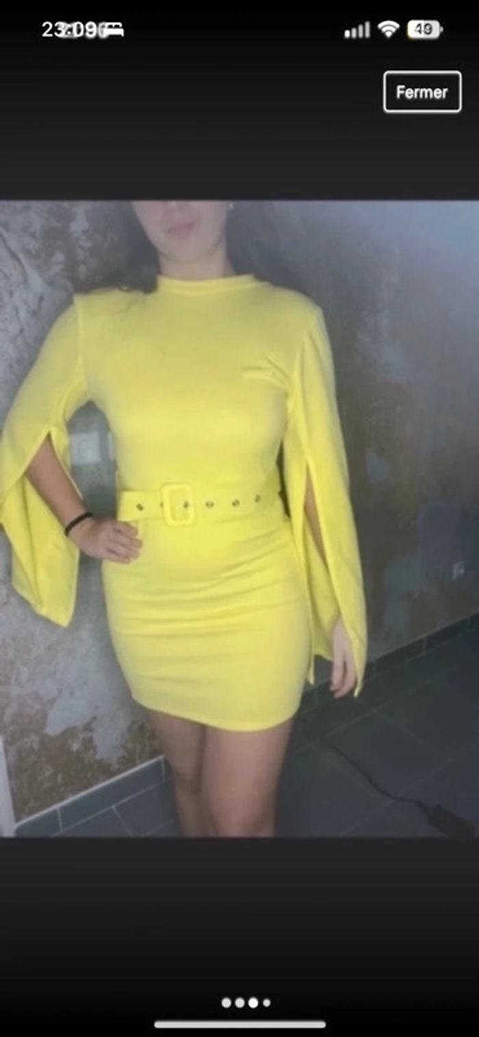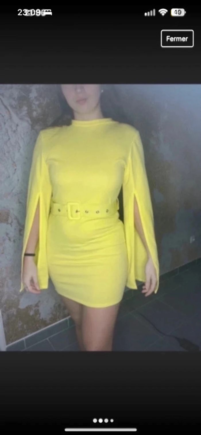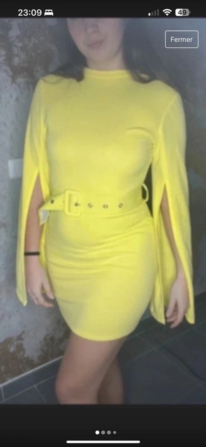 Robe jaune très bon état avec ceinture et manches type chauve souris