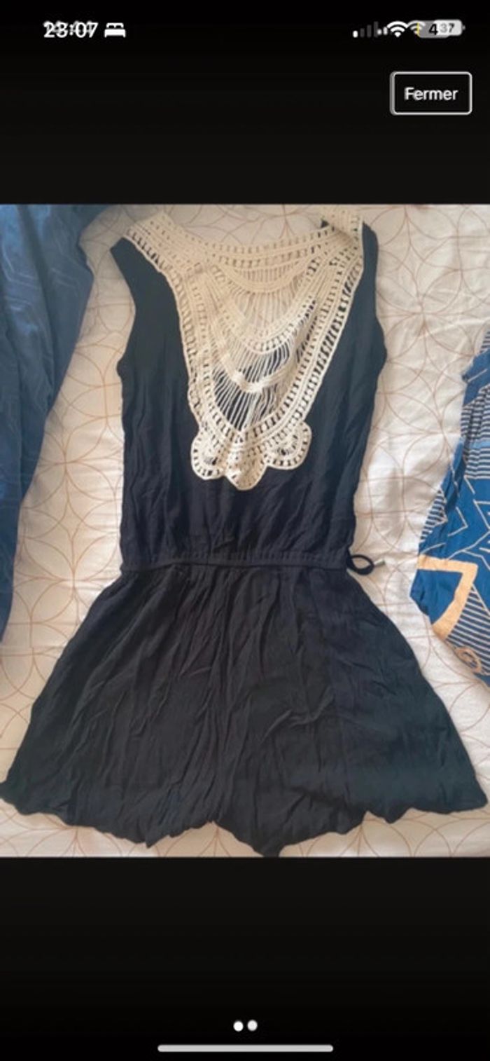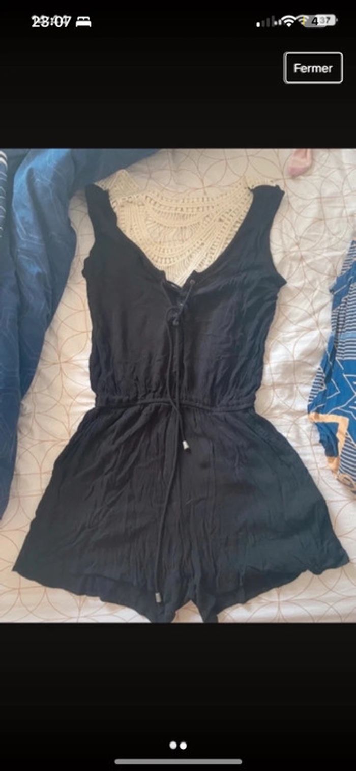 Combi short noire bon état, serrante avec lanières à la taille et motif coton au dos