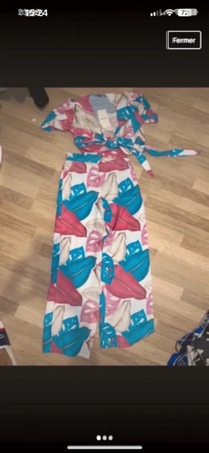 Ensemble d’été léger fluide haut et pantalon taille unique neuf avec étiquette photo portée en mp