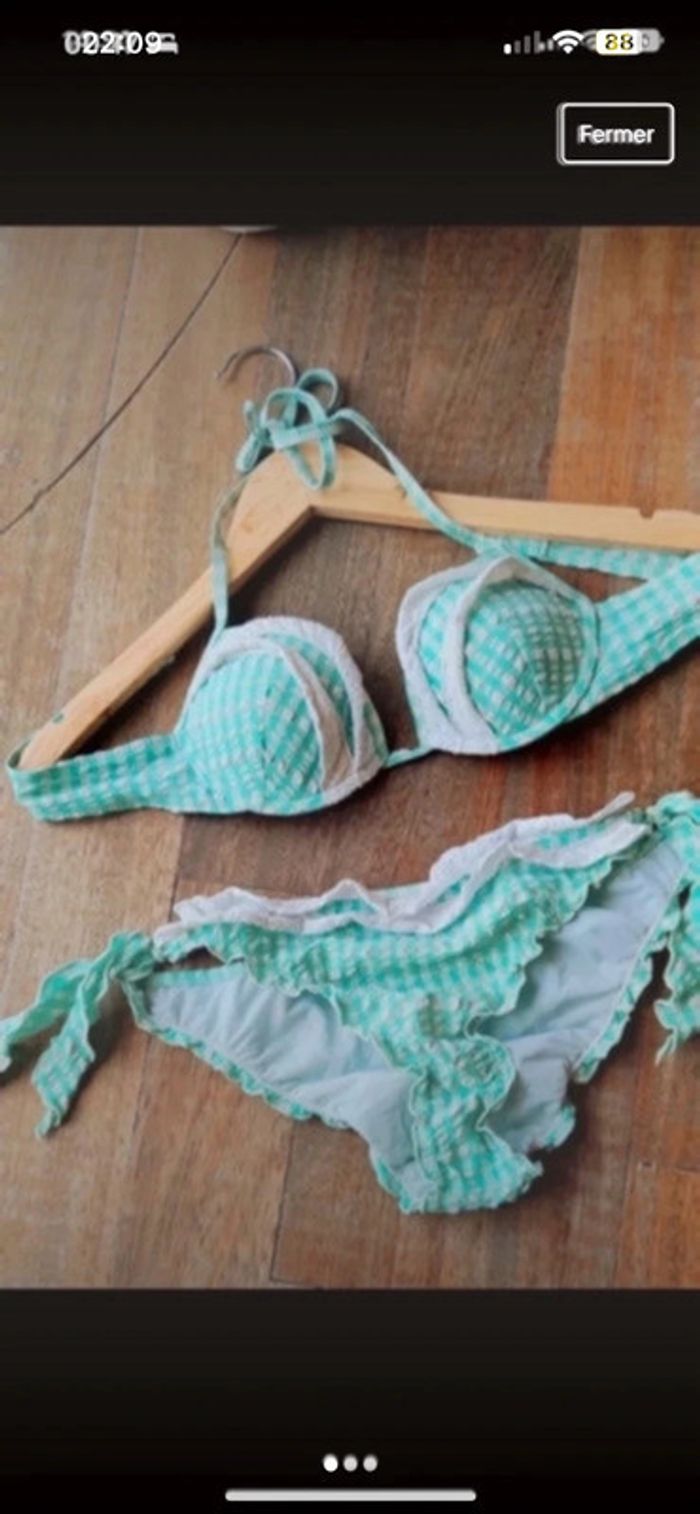 Maillot de bain bleu turquoise à carreaux type Vichy