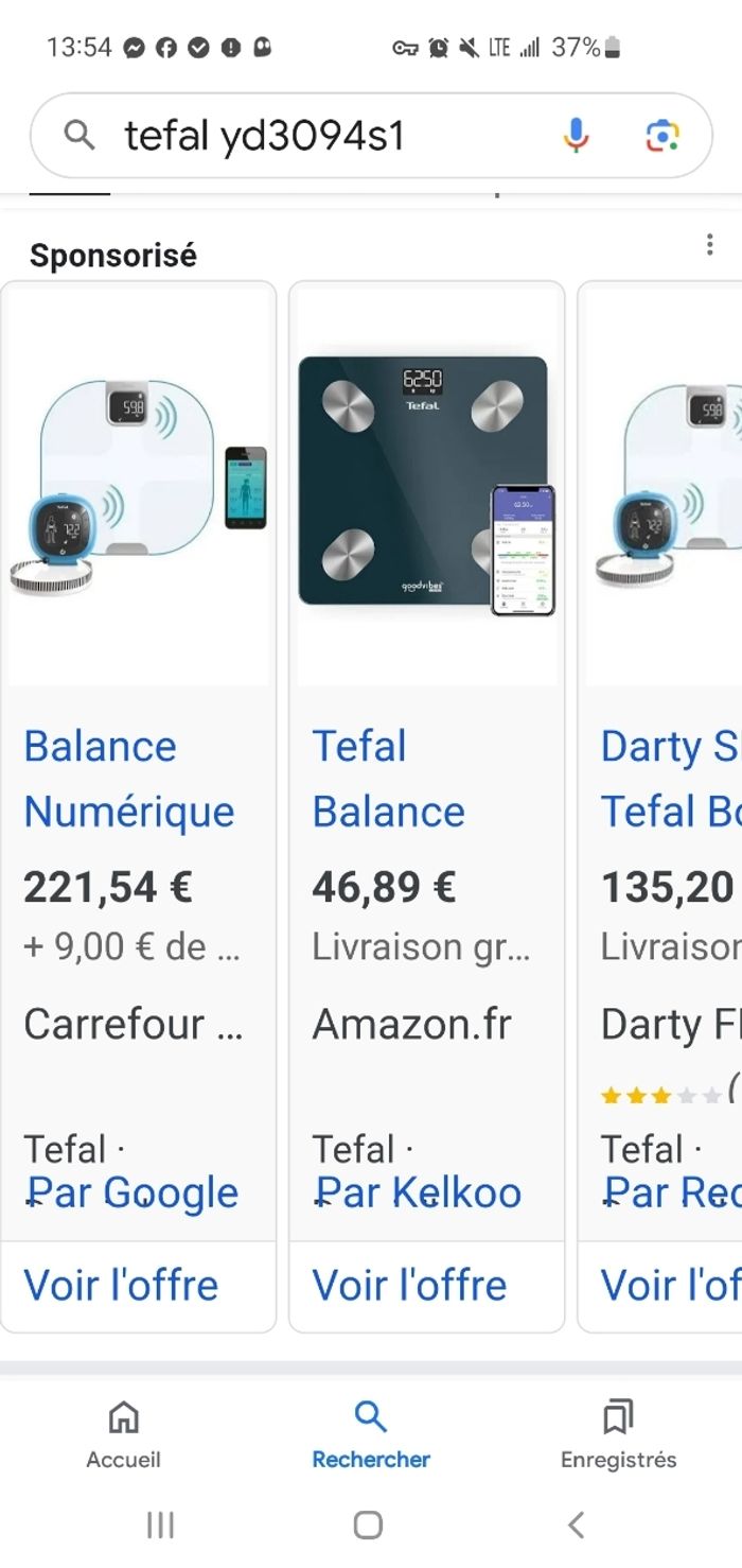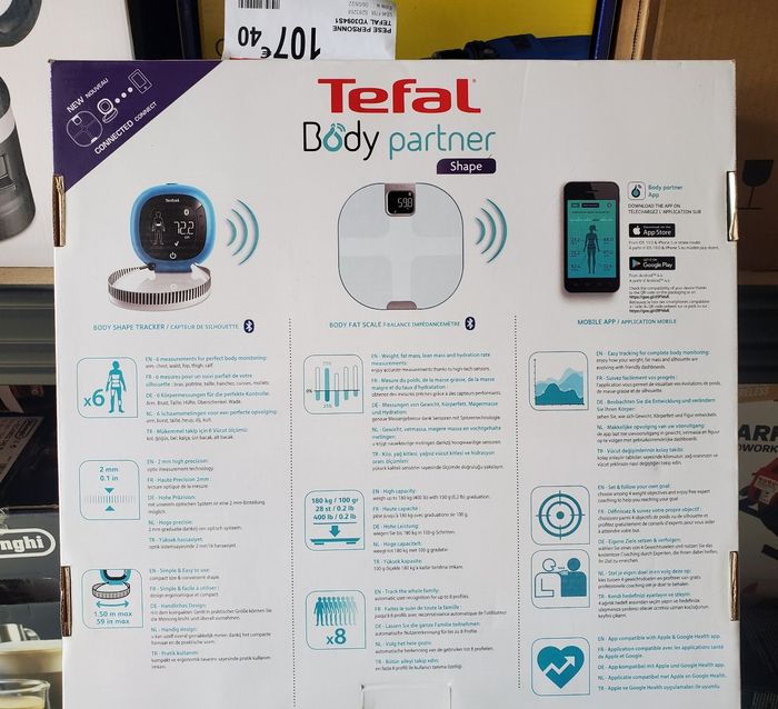 TEFAL YD3094S1 Body Partner Balance connectée Bluetooth, Pèse-personne, Coaching nutritionnel intégrés, Contrôle masse graisseuse. Neuf prix 69 Euros.
