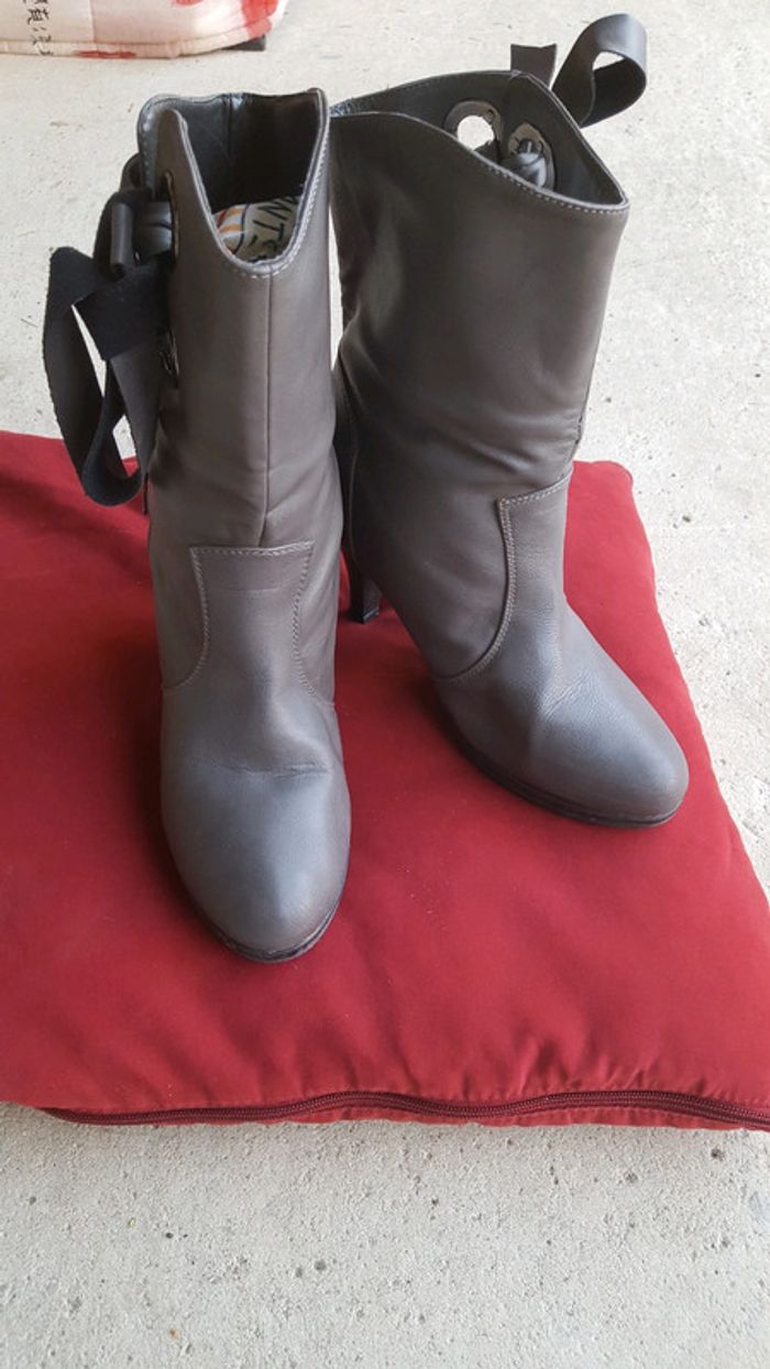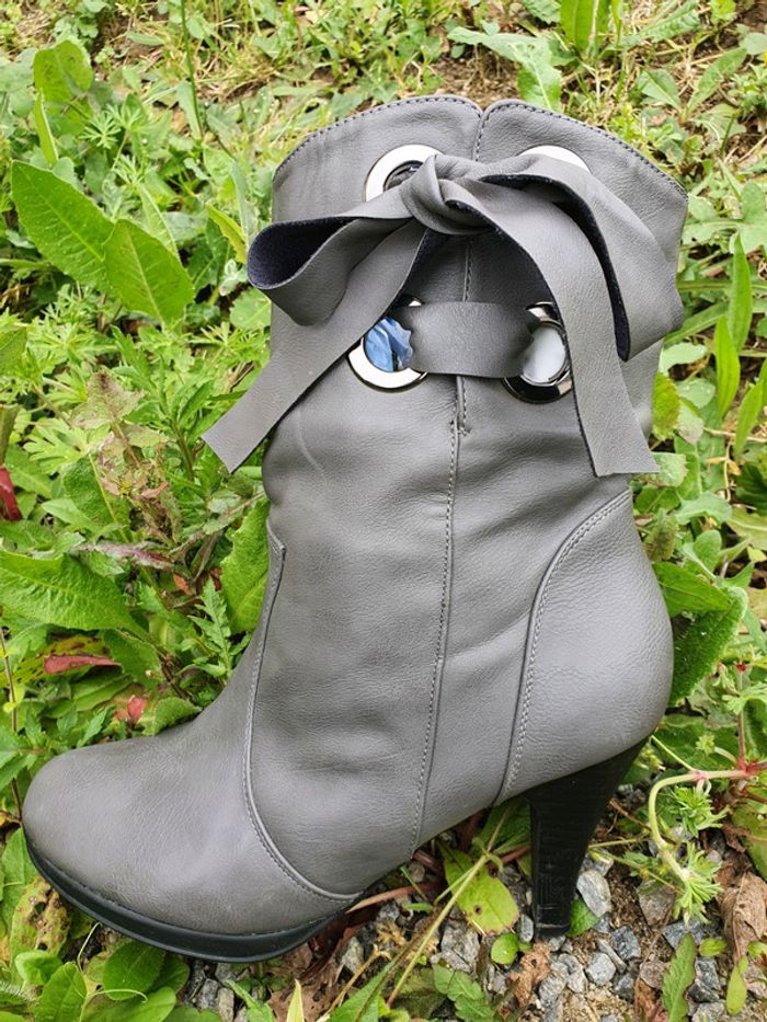 Bottines grises à talons noirs - photo numéro 1