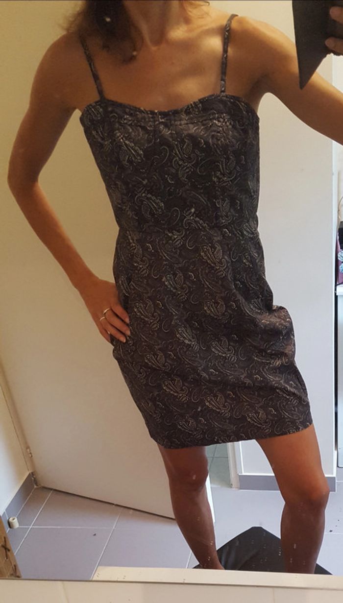 Robe courte avec bretelles réglables et fermeture dans le dos. Un peu grande pour moi car je fais du 36.