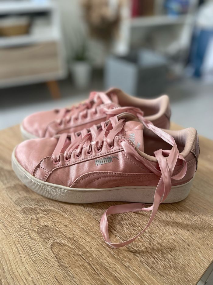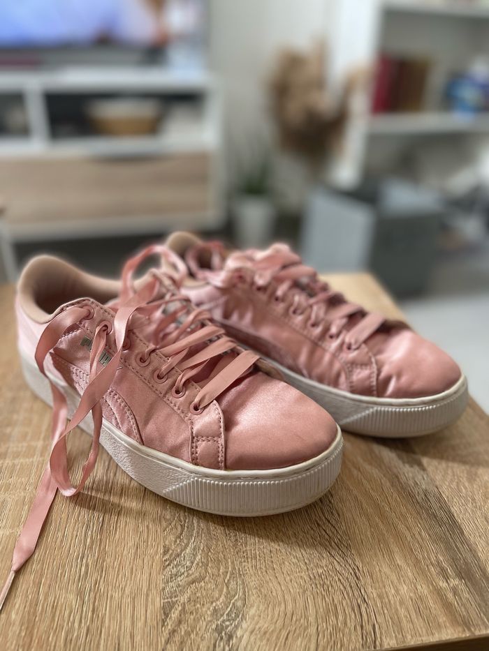 Basket puma satin rose Déjà porté, quelques marques sur la semelle. Bon état général