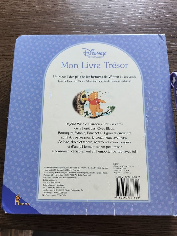 Vends livre Winnie l'ourson avec 4 histoires. Se transporte comme un sac Bon état