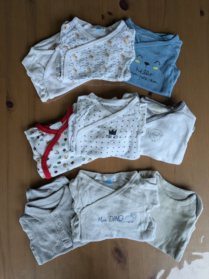 9 bodies manches longues en très bon état. Multi marque Taille : 3 mois
