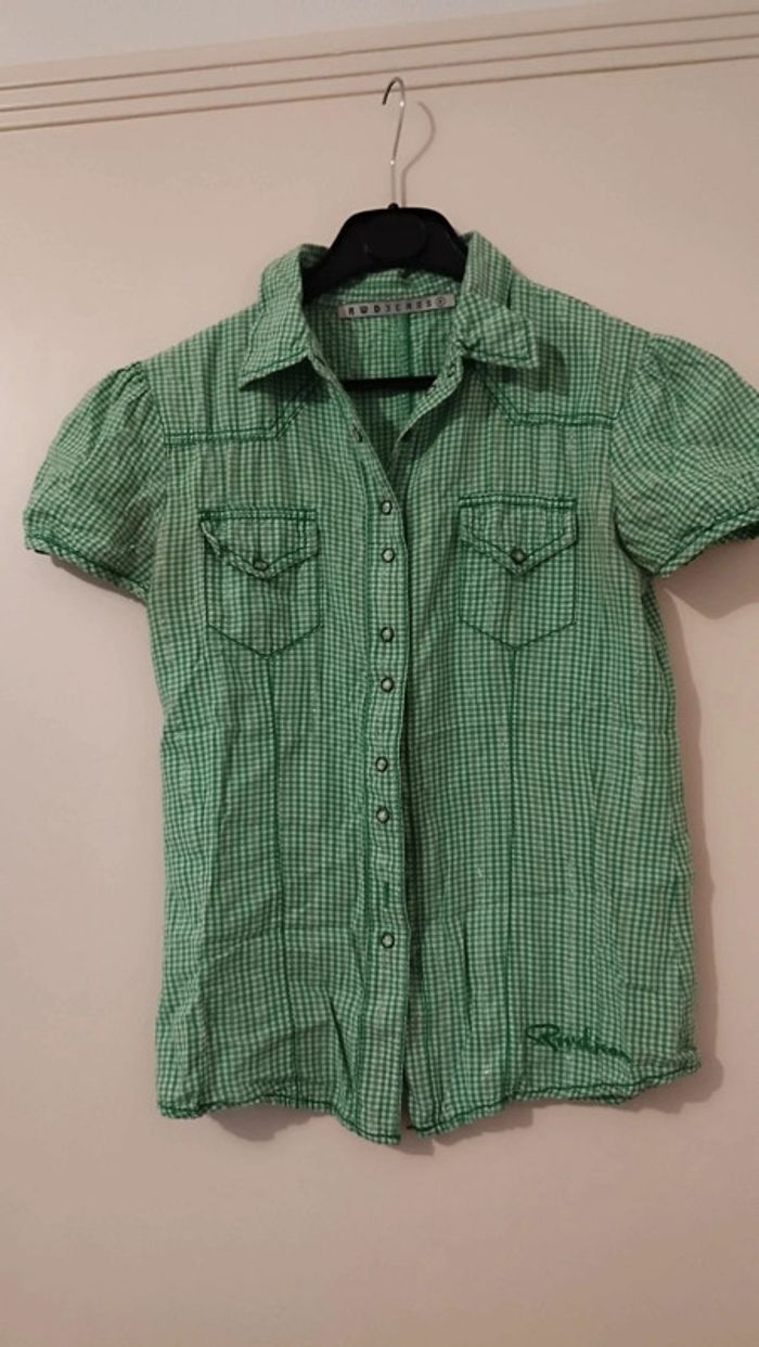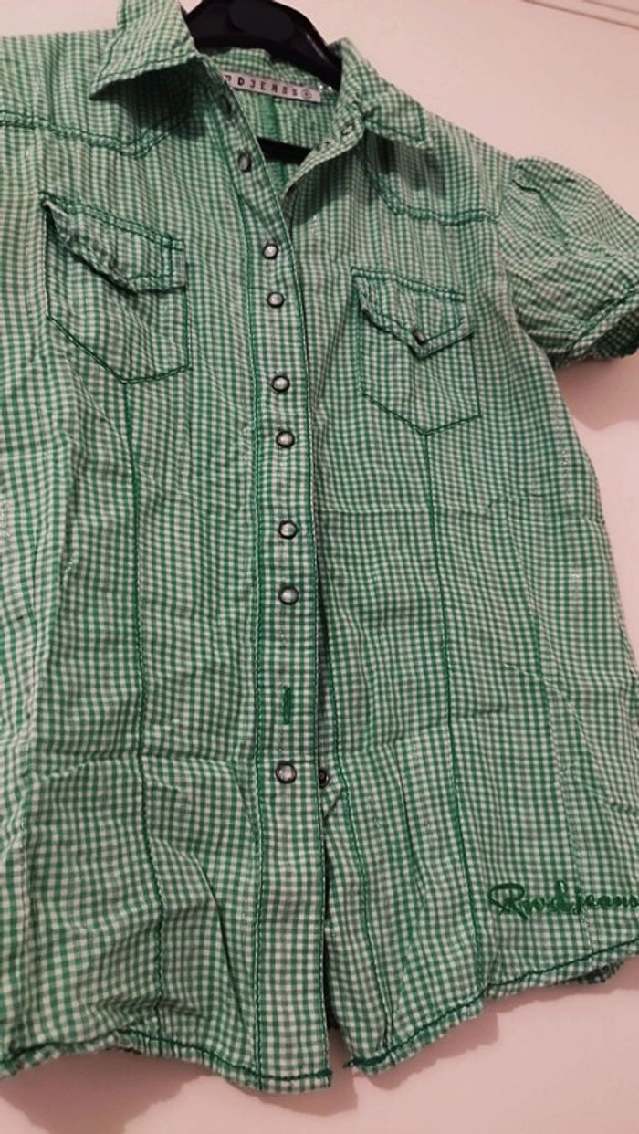 Joli petit chemisier Rivaldi, imprimé vichy (carreaux verts et blancs). Modèle vintage de 2006. D'autres articles femme en 34 par ici : #femme34elpi2201 #vichy #y2k #y2kstyle