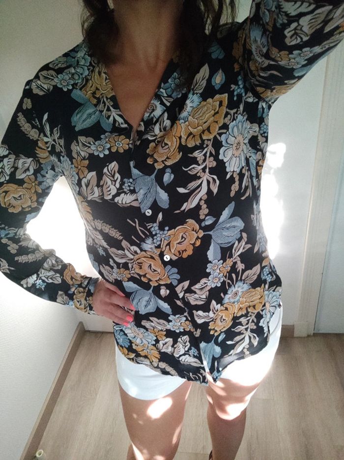 Chemise femme imprimé fleurie. Lavée mais jamais portée. Coton biologique. D'autres articles en 34 par ici : #femme34elpi2201