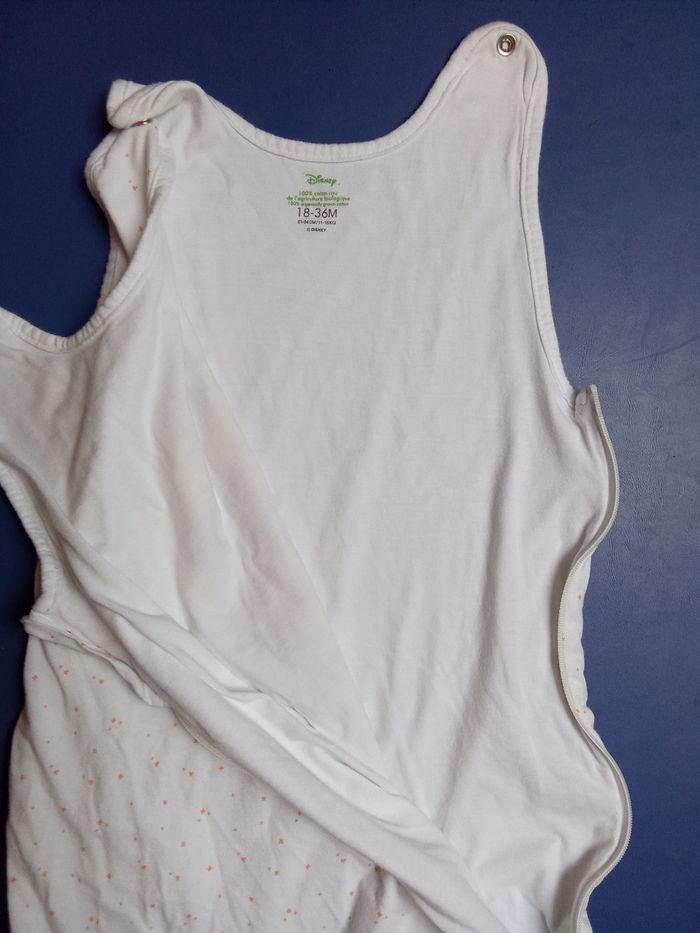 Turbulette fine pour bébé fille pour la mi-saison été , tog 1, marque Disney. Pression sur les épaules, fermeture éclair sur le côté, réglable, motifs . Bon etat général. Beaucoup d'autres turbulettes enfant également à vendre ds mon dressing et réduction activée