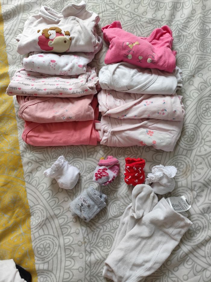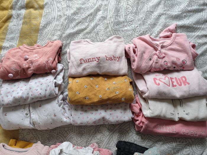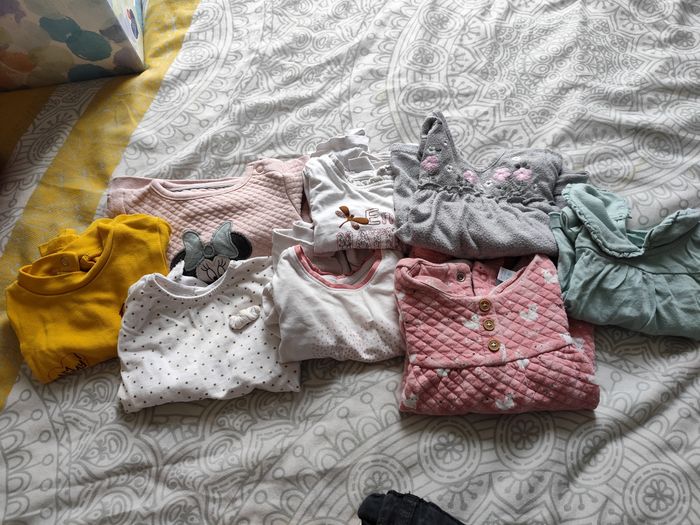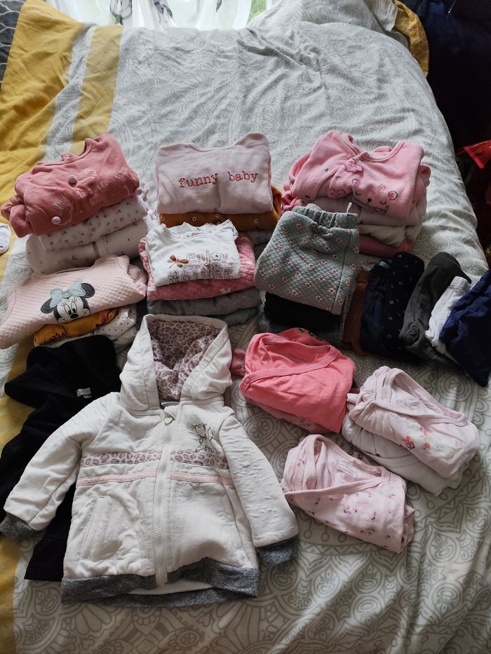 * 6 mois * Articles de différentes marques: Obaibi, Kiabi, Absorba, Disney... Lot comprenant: 10 pyjamas 9 bodys 8 hauts 9 pantalons/leggings 2 sweats 5 paires de chaussettes et une paire de collants 📨 Envoi rapide 📨