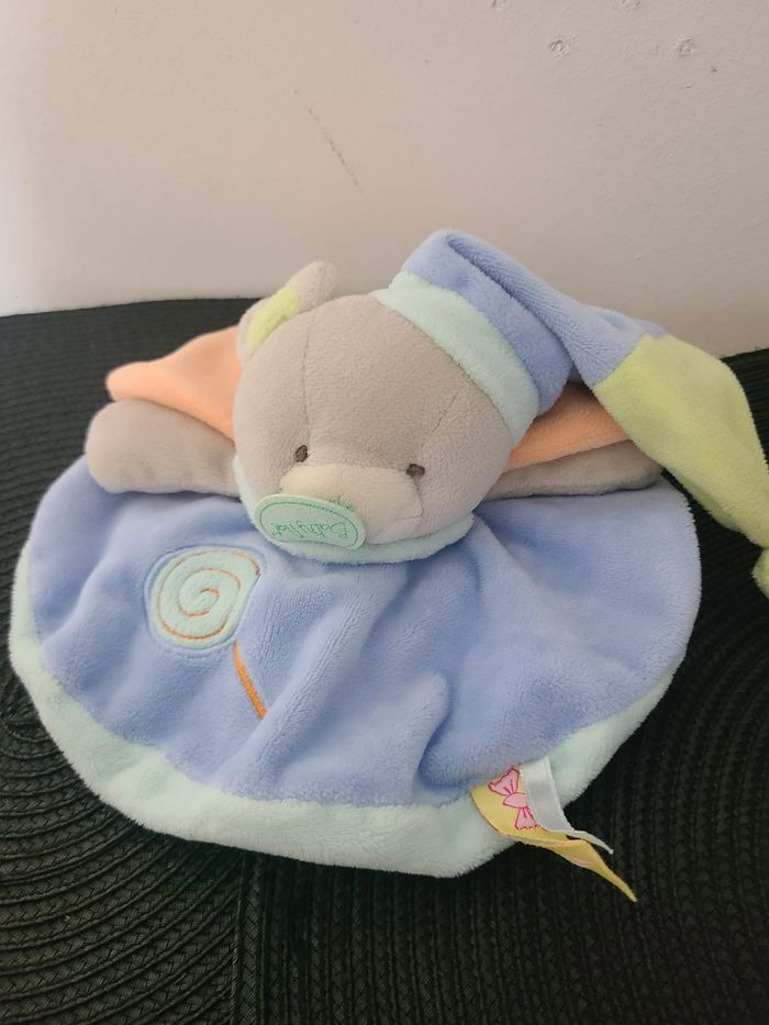 Doudou plat ours BABY NAT' Gourmandise bleu vert orange - photo numéro 1