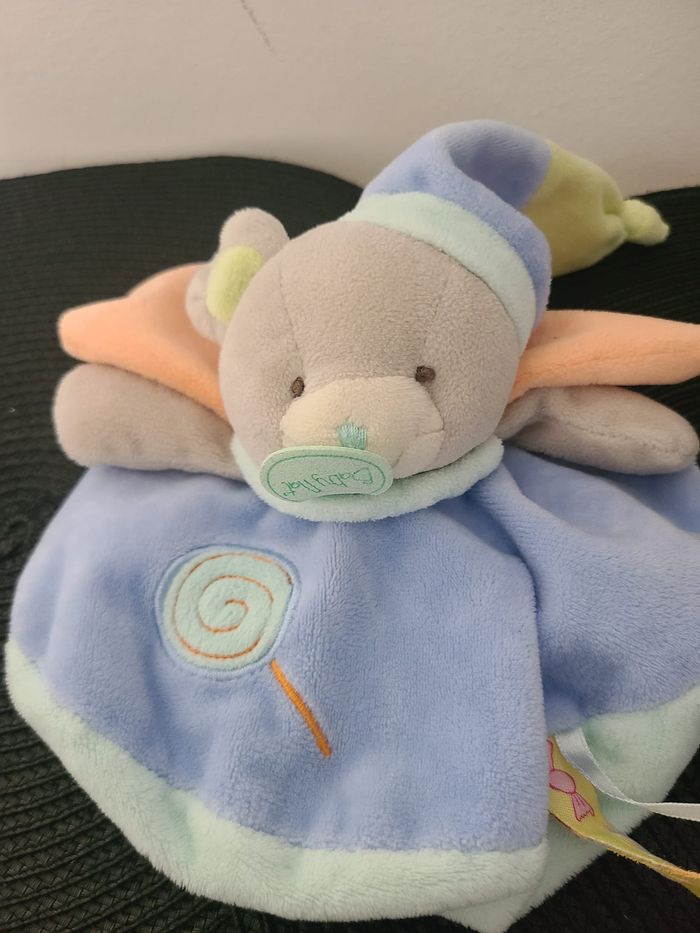 Doudou plat ours BABY NAT' Gourmandise bleu vert orange