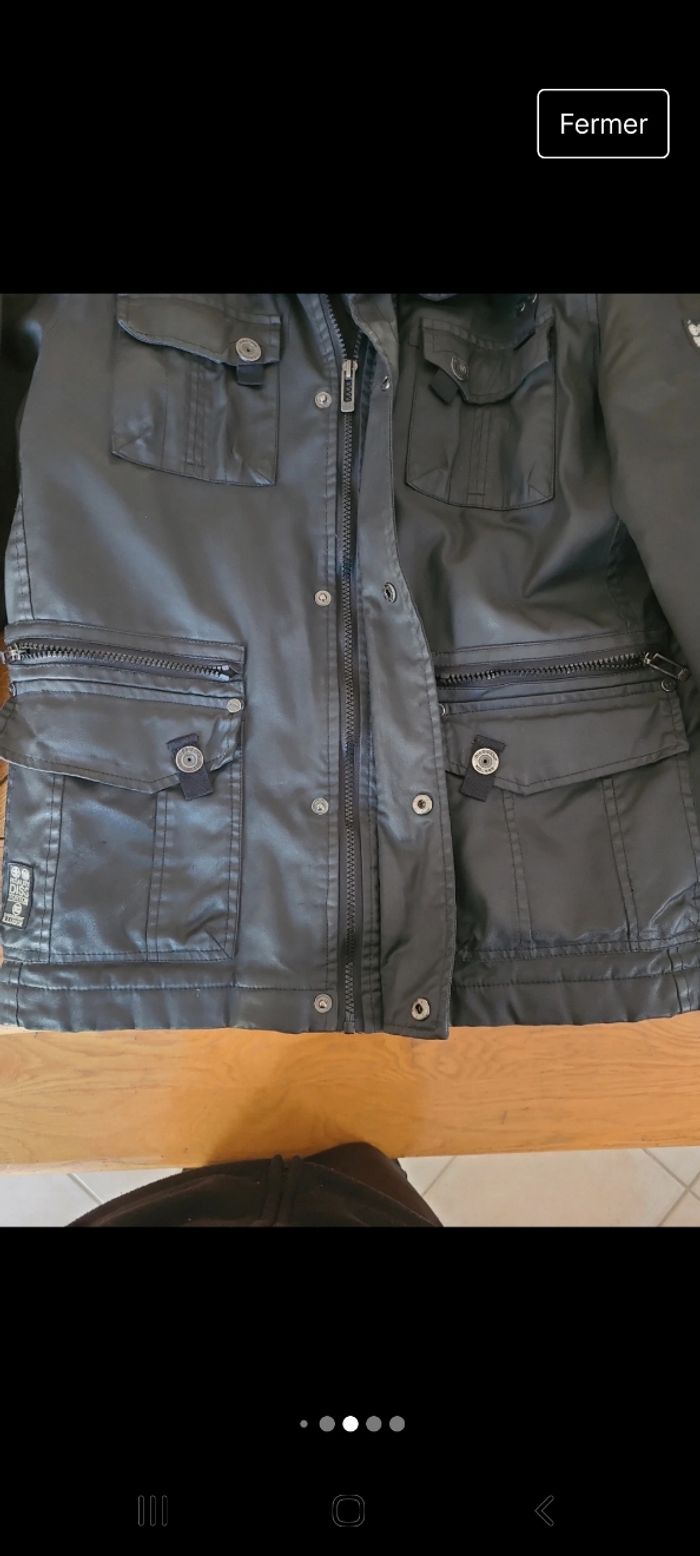 Blouson homme mi saison. Noir avec fermeture éclair et boutons. Plusieurs poches. Très bon état