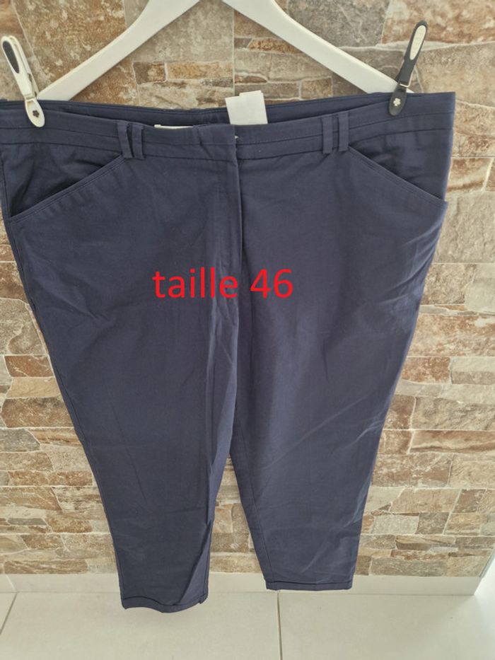 1 pantalon 98% coton bleu marine taille 46 marque camaieu longueur la taille devant 48 cm env longueur entre jambe 64 cm env #laetie69_femmesTAILLE46