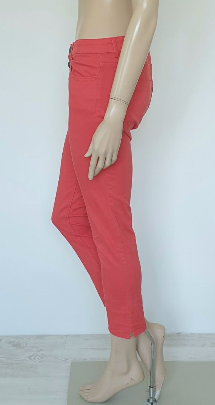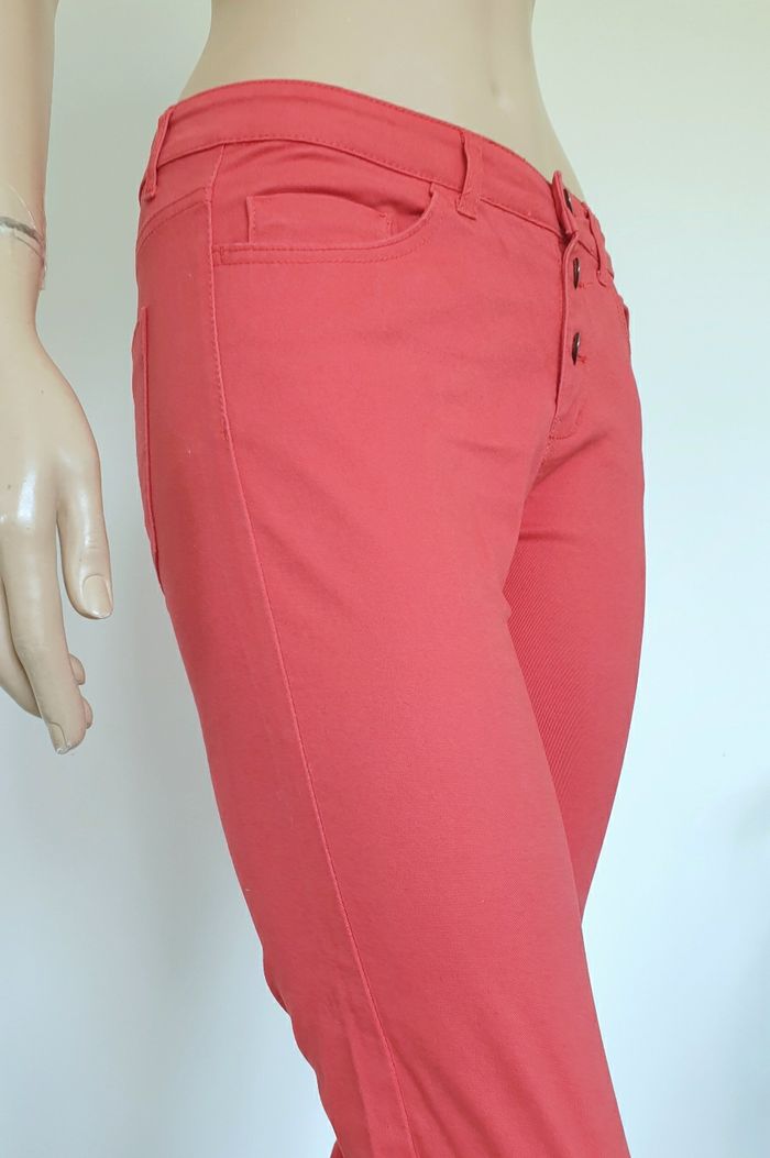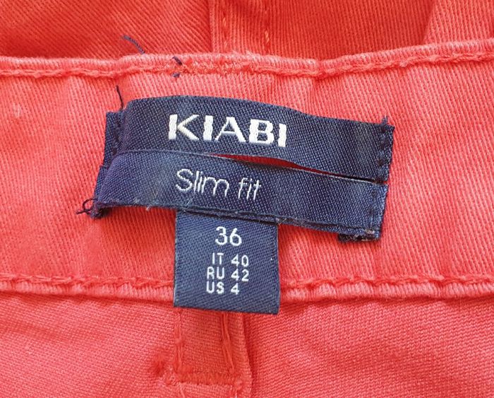 Un jeans rouge clair de 88cm de long À partir de l'entrejambe 66cm Taille à plat 36cm Kiabi Taille 36