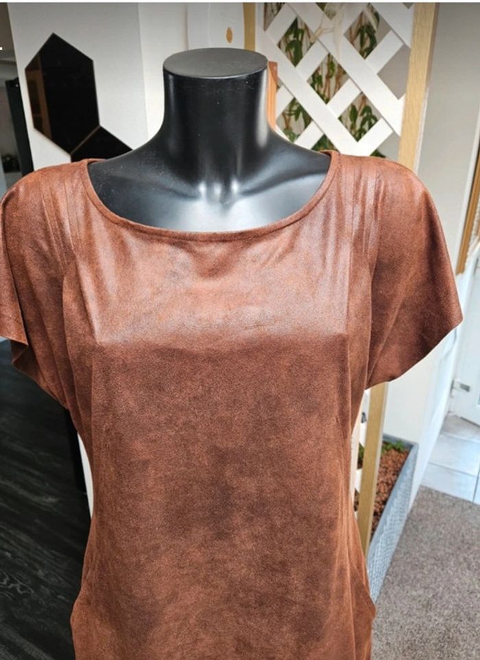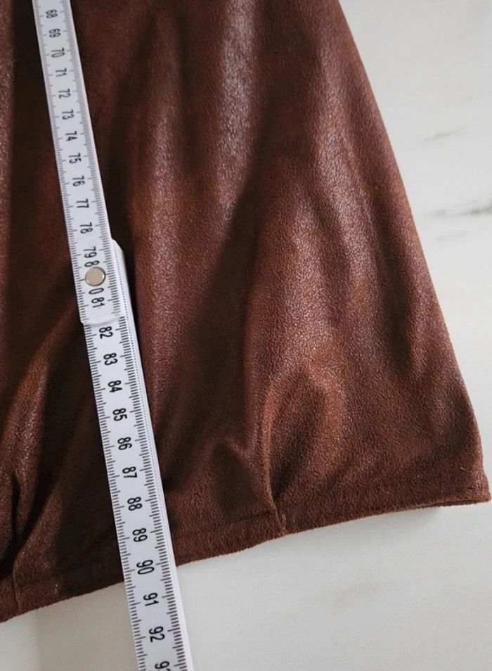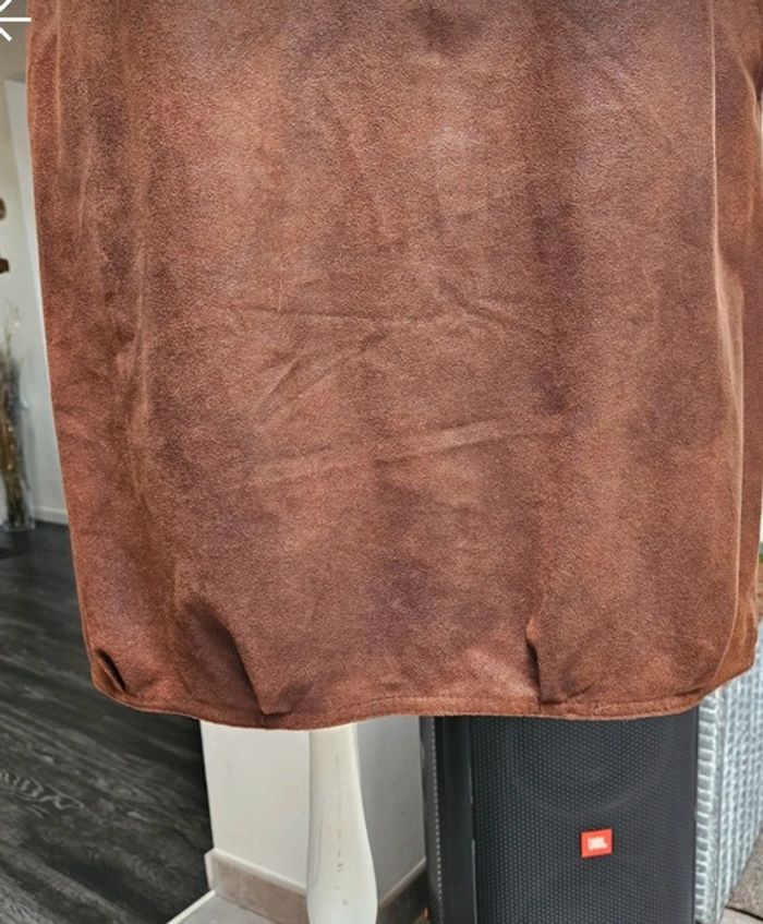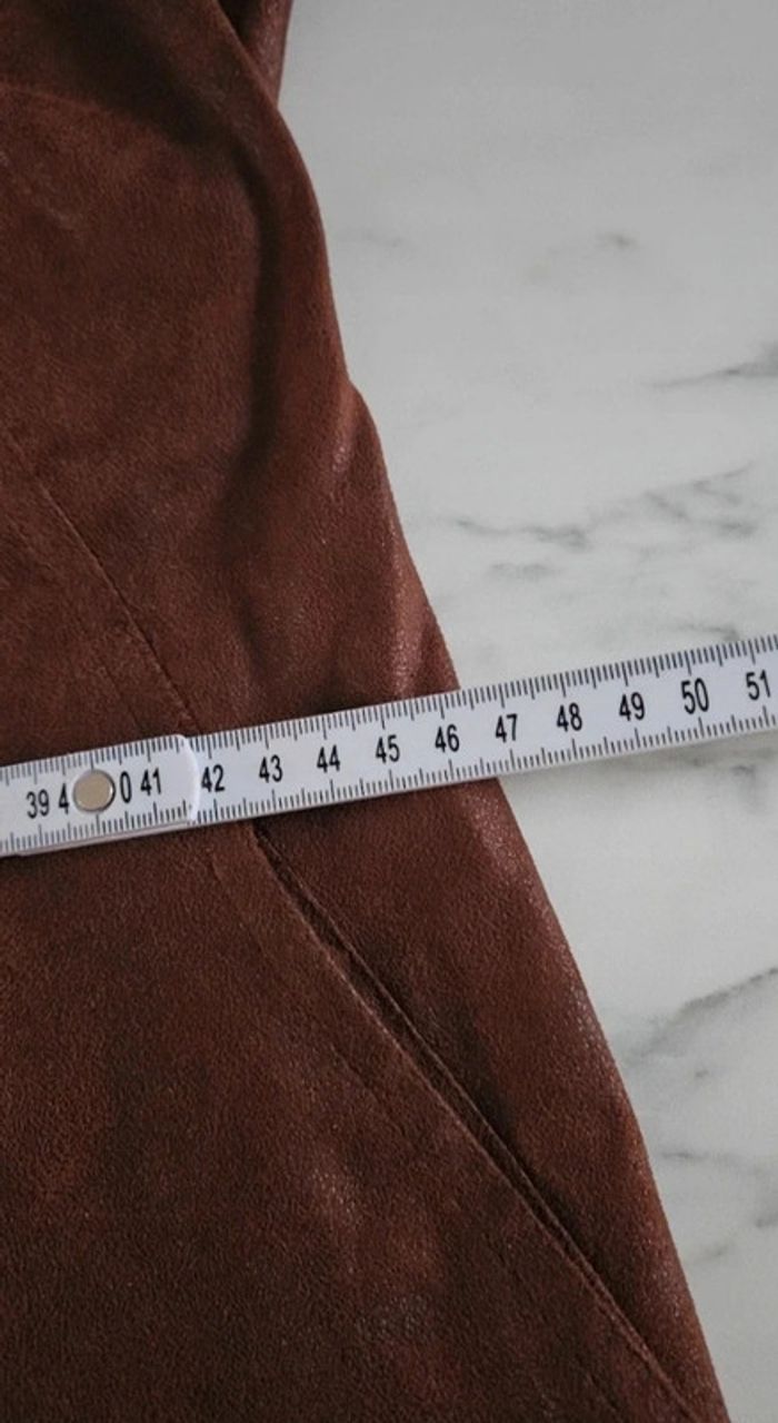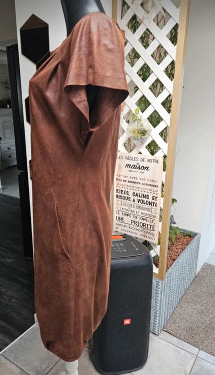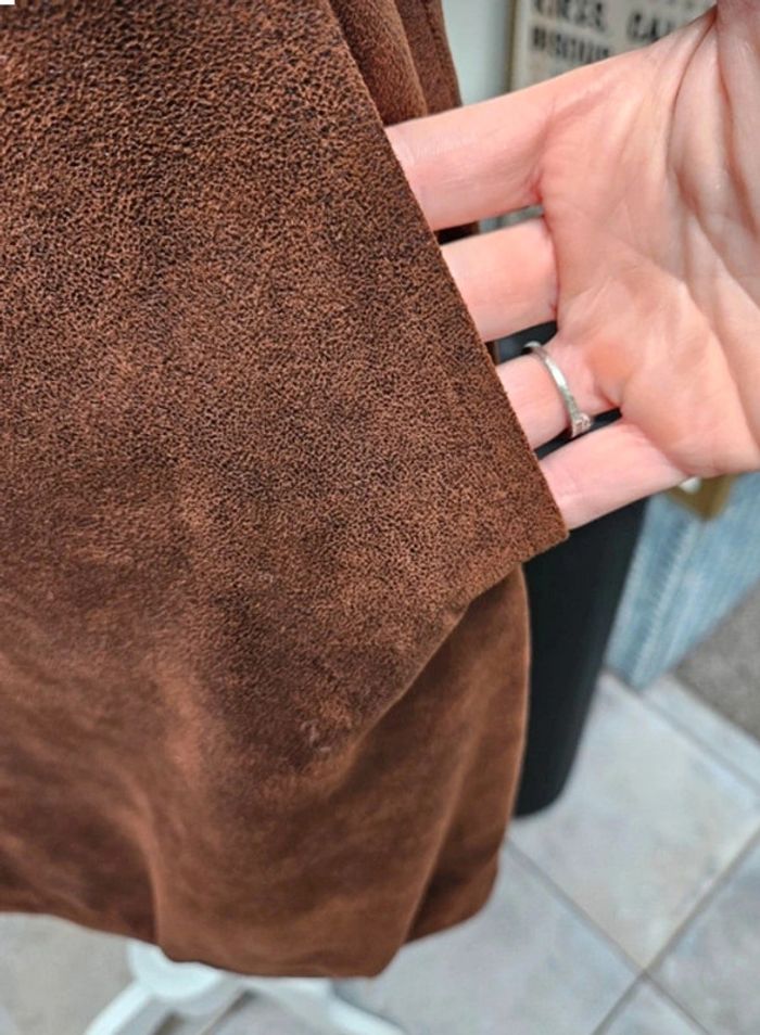 Superbe robe aspect un peu comme du daim légèrement luisante. Elle est en parfait état et les dimensions se trouvent sur les photos