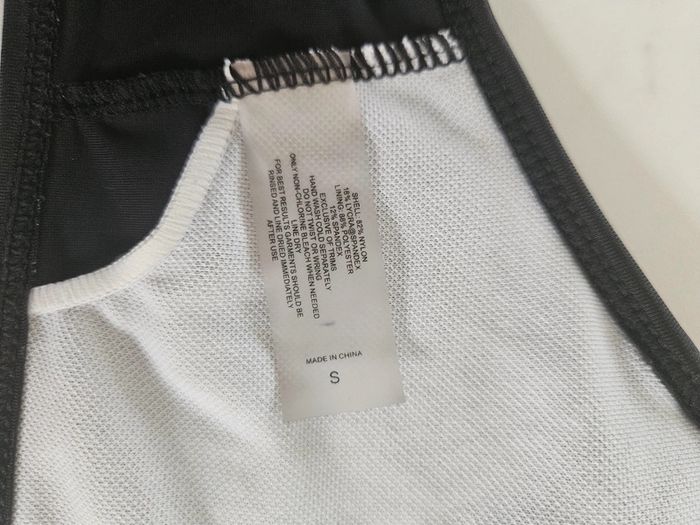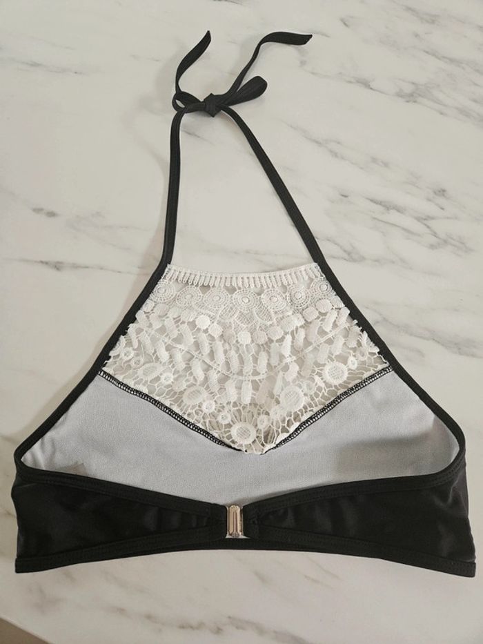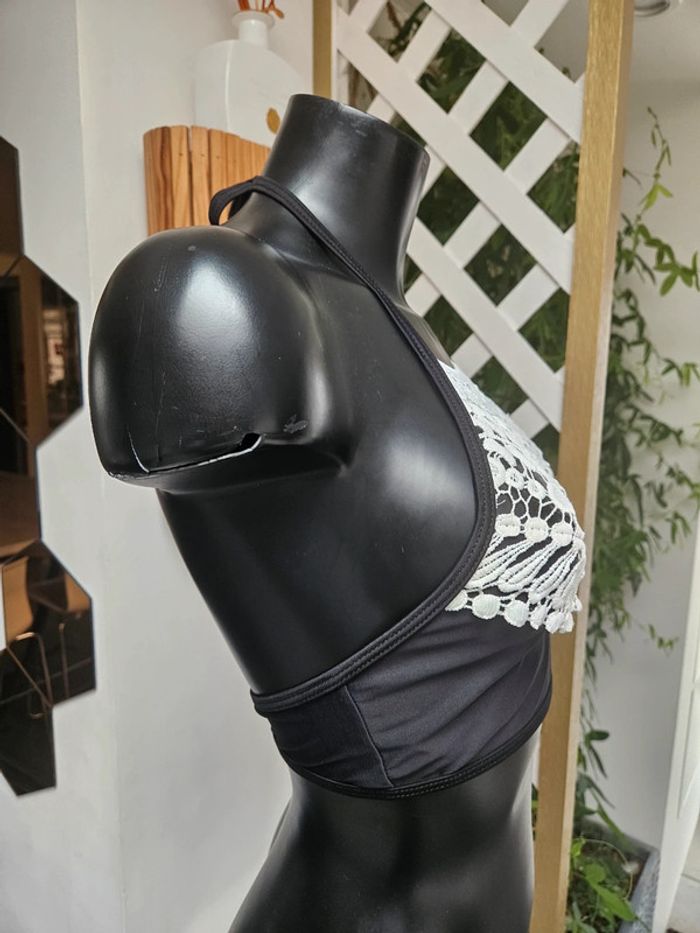 Noir et blanc Lycra et dentelle. Il est en état impeccable. Le rembourrage à été enlever