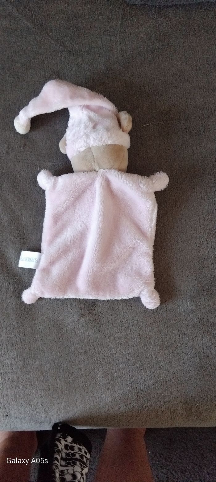 Doudou ours  plat rectangle rose - écusson ours - lune , étoiles- Nicotoy - photo numéro 1