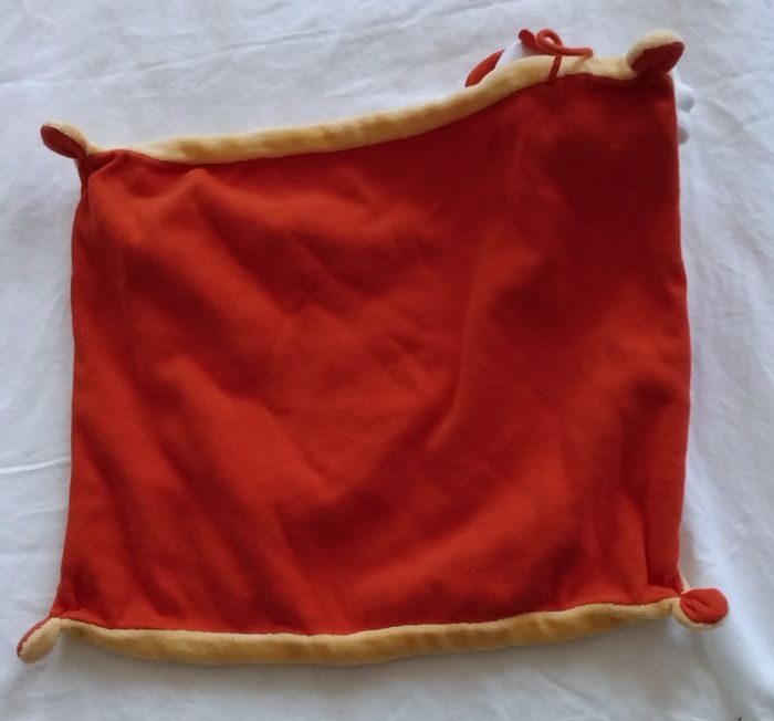 Doudou carre plat jaune et rouge - poule avec œuf poussin - Dpam