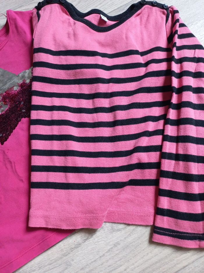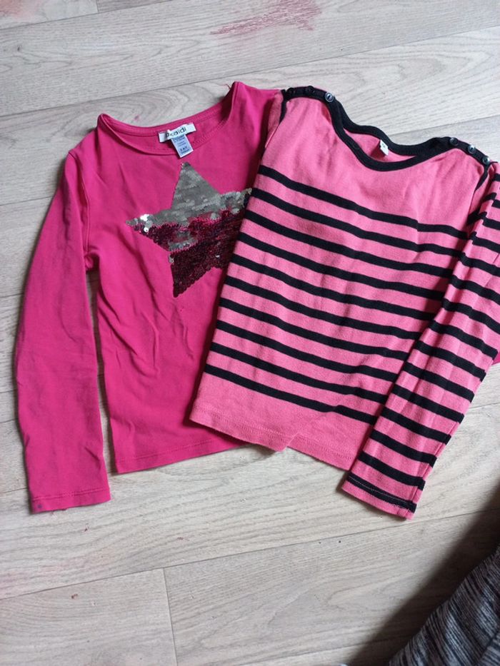 1 t-shirt okaidi petite tâche aux manches et un mini trou voir les photos 1 t-shirt epais ou pull très fin #lenkekepuces5ans