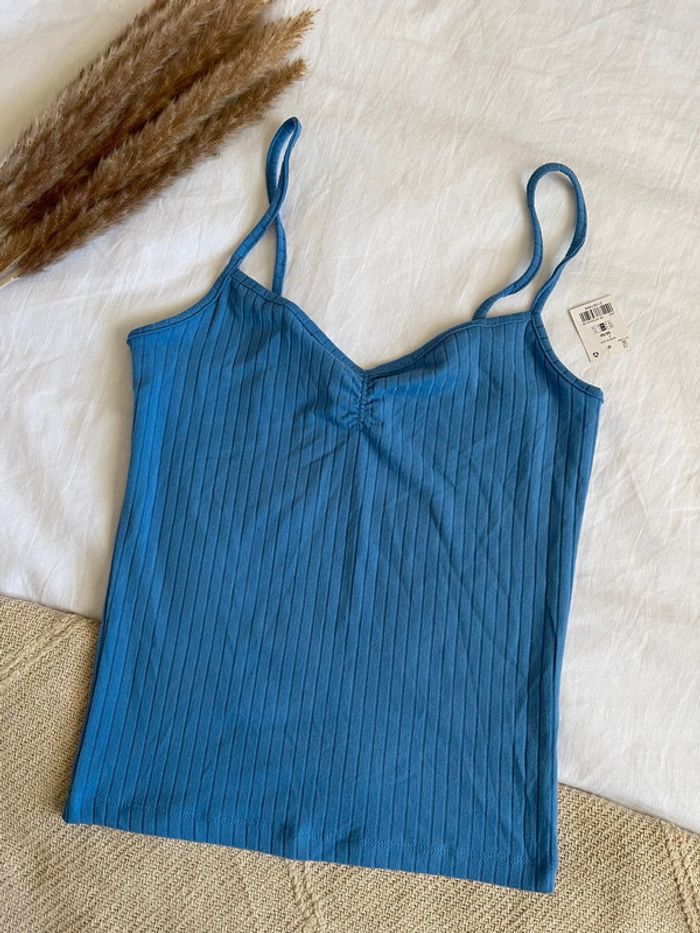 Débardeur bleu côtelé Taille m Neuf #debardeur #femme #taillem