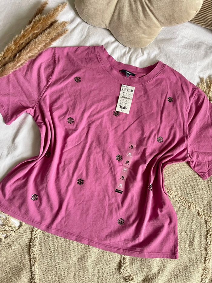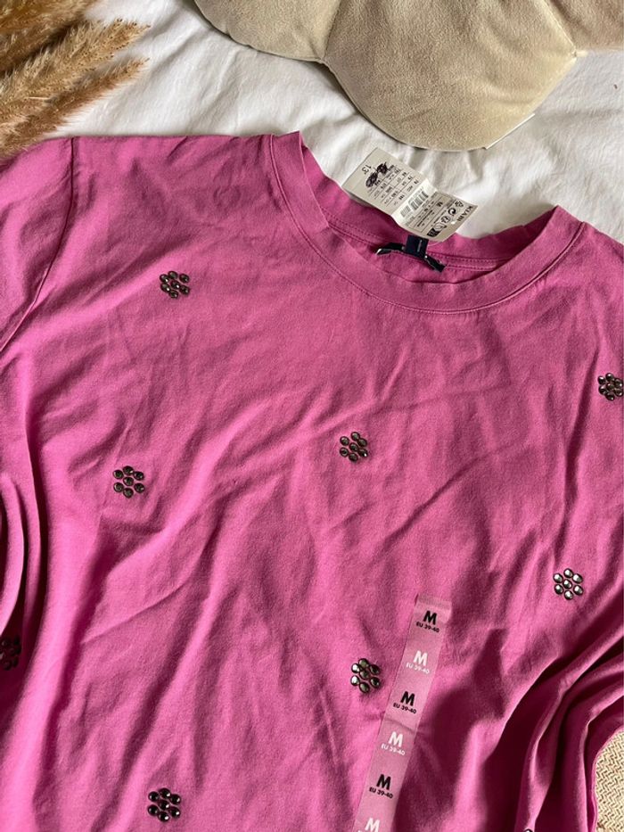 Tee shirt rose strass Taille M Neuf étiqueté Kiabi