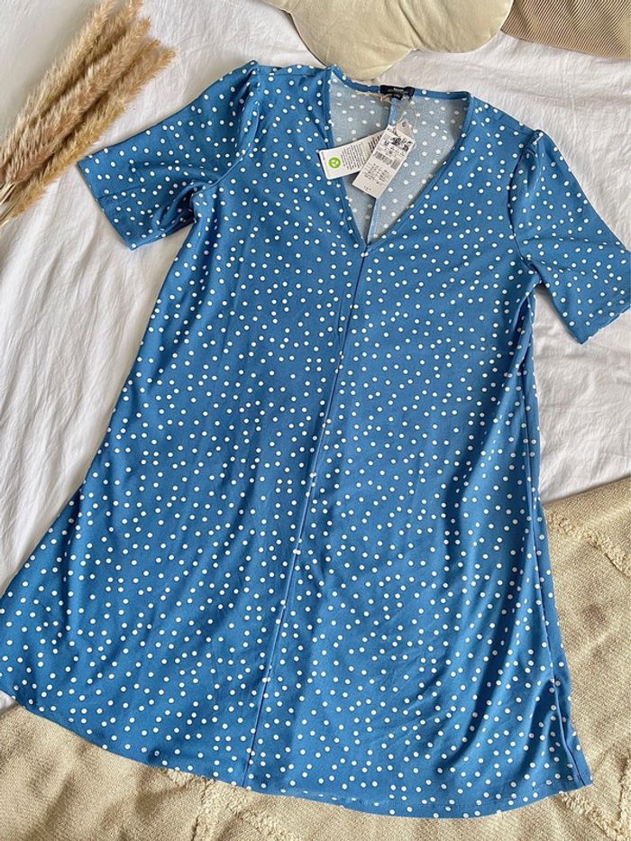 Robe bleue à pois Taille M Neuve étiquetée Kiabi