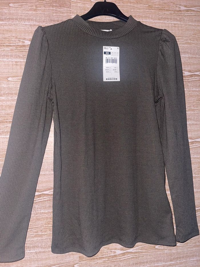 Haut à manches longues côtelé Kaki Taille XS Gemo Neuf étiqueté