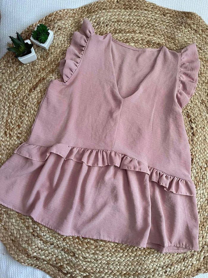 | 🍭 Blouse rose avec volants aux manches, taille unique 🫧