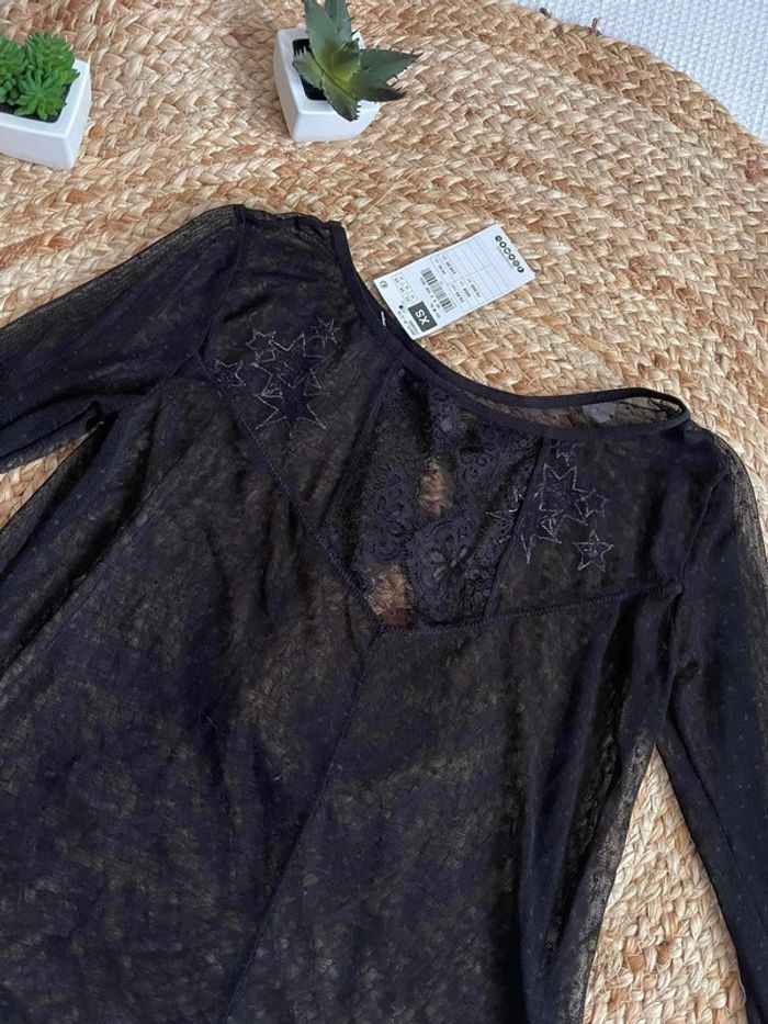 🍭 Haut noir manches longues, transparent taille XS Gémo, neuf étiqueté à 19,99€ 🫧