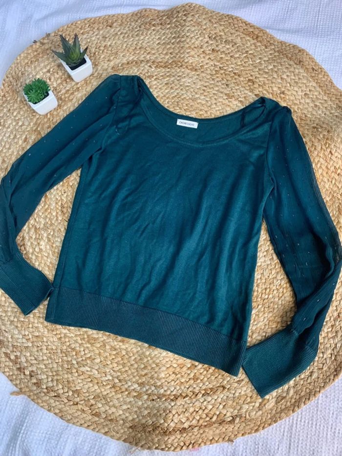 Haut vert sapin cache-cache Manches en tulles transparentes Taille S/M