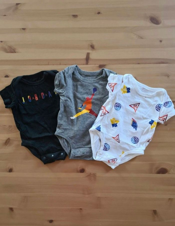 Lot de 3 bodies Nike manches courtes. Taille 3 mois. Très bon état.