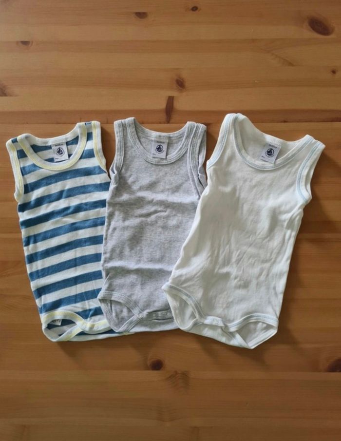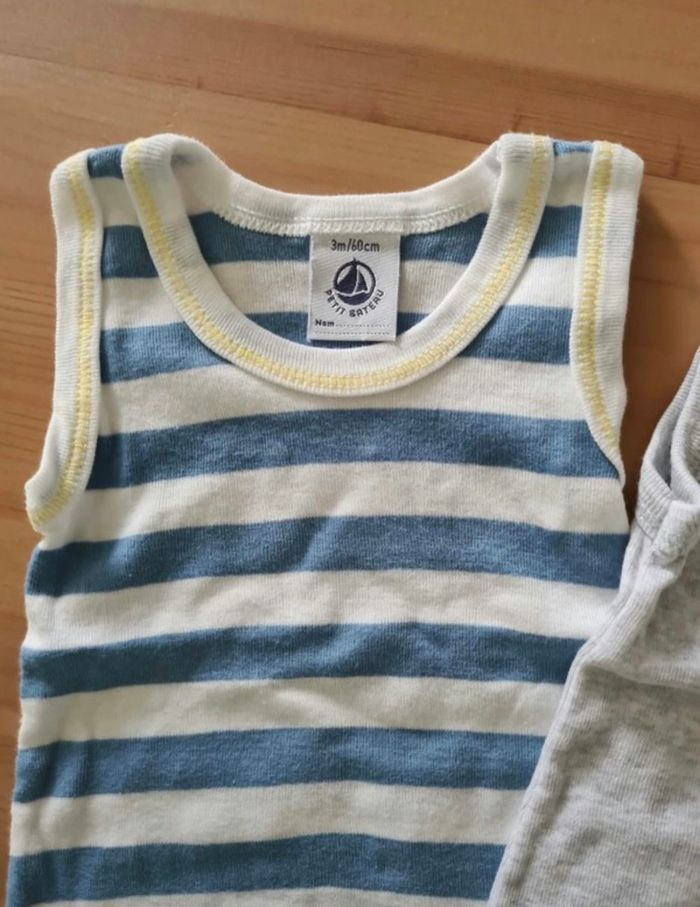 Lot de 3 bodies Petit Bateau brettelles. Taille 3 mois. Très bon état.