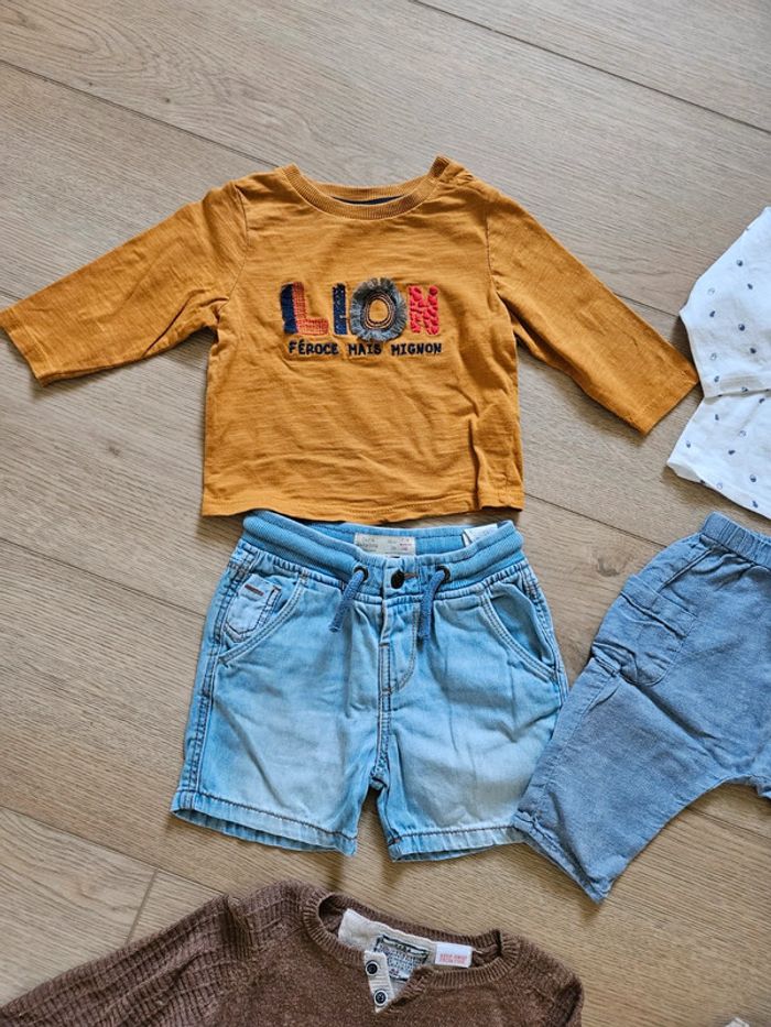 Ce lot comprend : - 2 tee shirts manches longues marque kiabi et tape à l'oeil - un short beige marque orchestra - un short jean marque zara - 1 sarouel léger marque zara - une combishort marque petit béguin - 1 salopette fine marque orchestra Taille 6 mois En très bon état #ensemblegarçon #benetton #kiabi #zara #18moisgarcon #gemo #lulucastagnette #petitbateau #hm #orchestra #ensemblegarçon #garcon6mois #garcon #zara #verbaudet #tapealoeil #gap #h&m #kiabi # kiabigarçon #gemogarçon #gémo #petitbateau #lulucastagnette