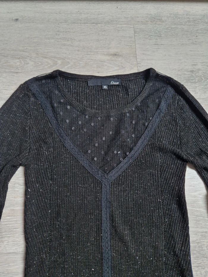 Pull etam XS neuf noir pailleté et décolleté dentelle - photo numéro 2