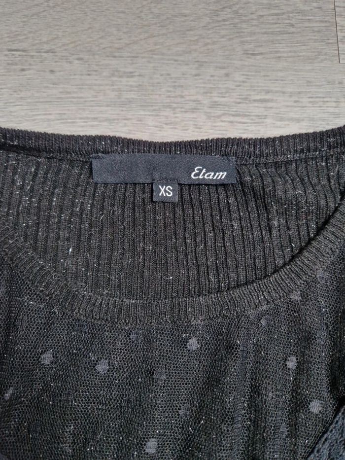 Pull etam XS neuf noir pailleté et décolleté dentelle - photo numéro 8