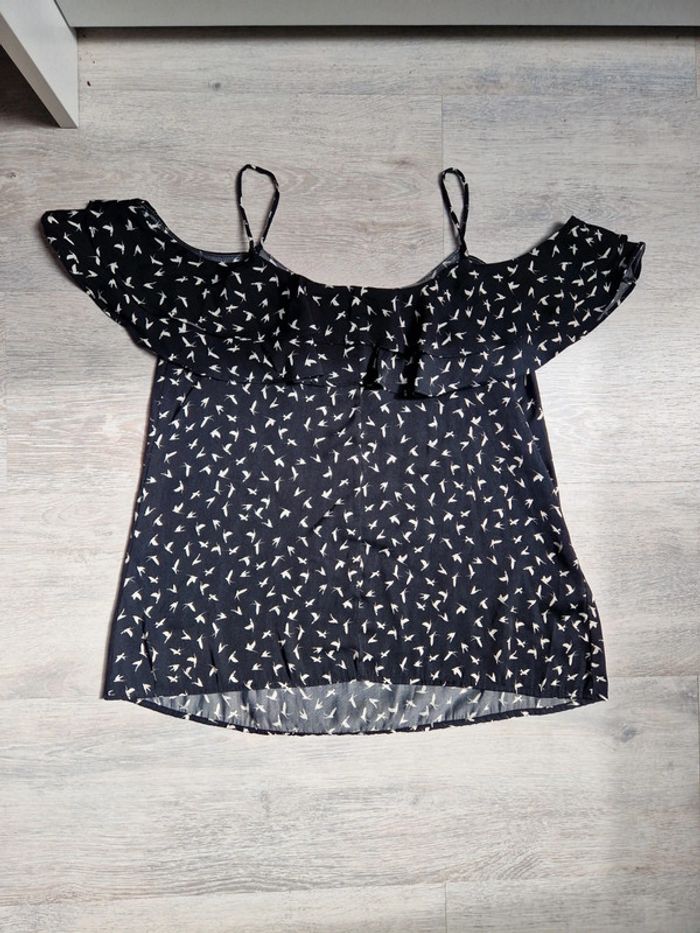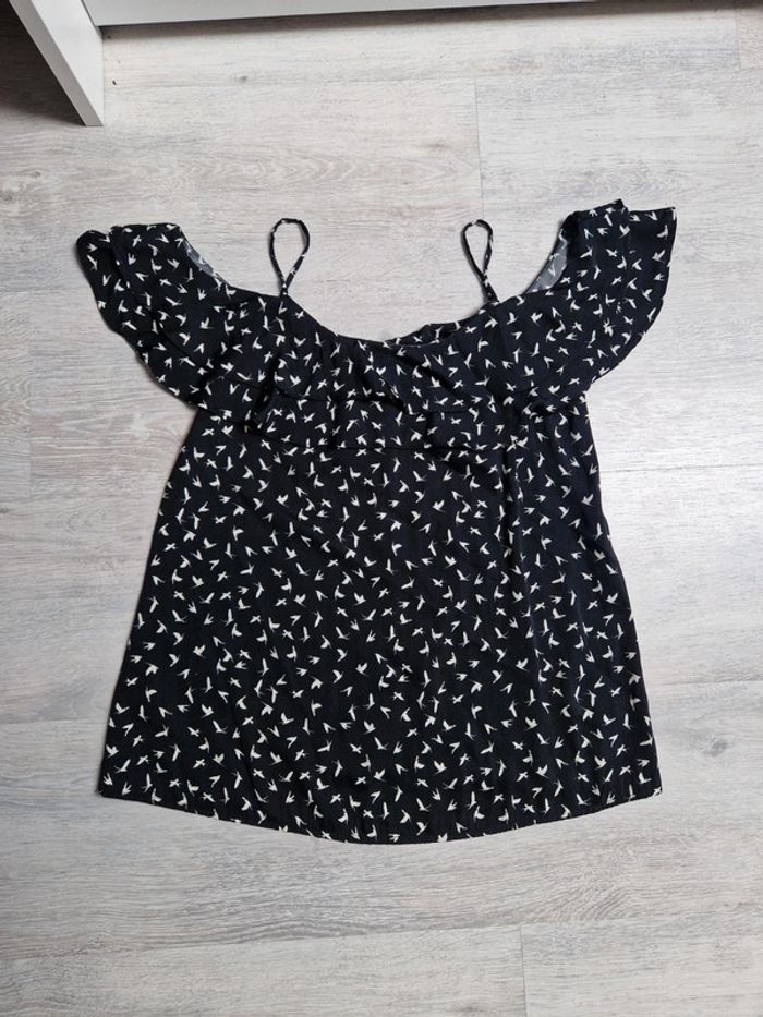Top à bretelles promod Étiquette de taille coupée mais convient à un XS #julilo7femme Noir avec motif Oiseaux Volant sur le col et au niveau des épaules