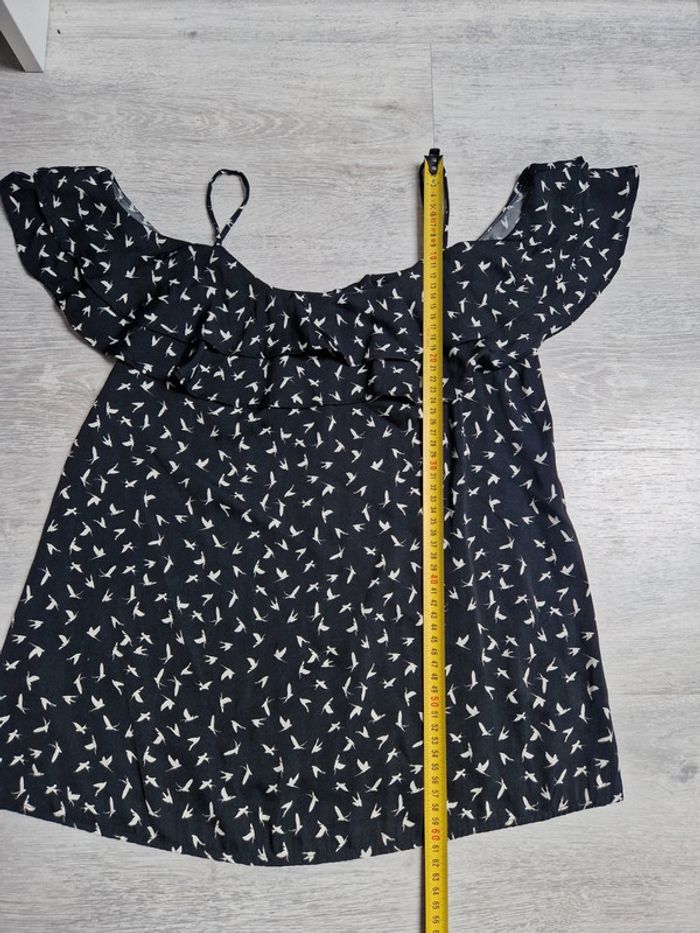 Top à bretelles Promod Étiquette de taille coupée mais convient à un XS noir avec motif oiseau - photo numéro 6