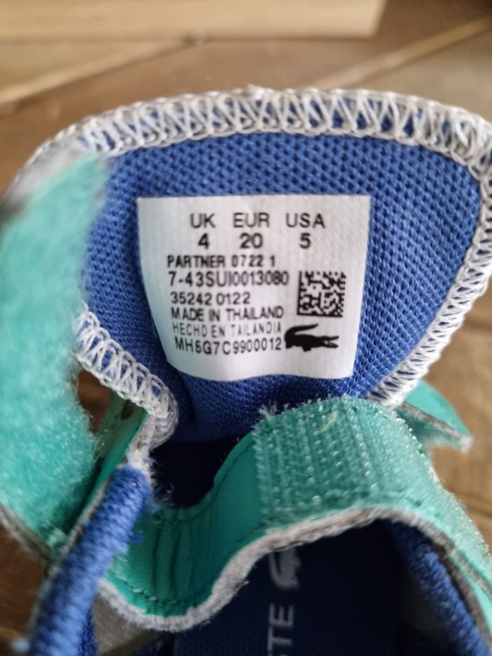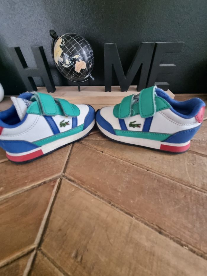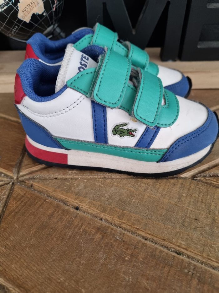 Baskets Lacoste à scratchs, pointure 20. En bon état.