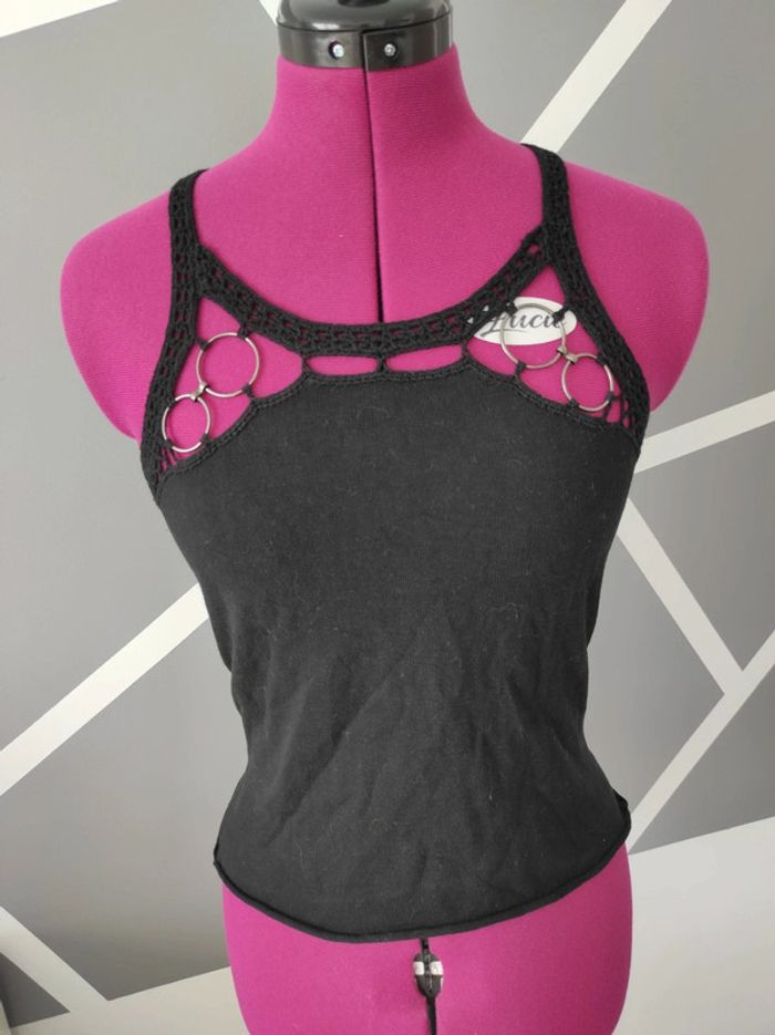 Débardeur Mango tS  crochet maille noir - photo numéro 1