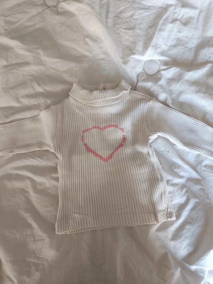 Pull blanc petit cœur rose 6 mois